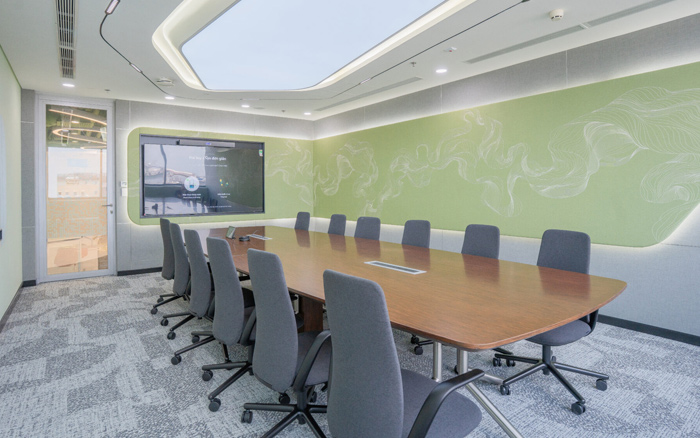 Phòng họp là nơi diễn ra nhiều hoạt động trao đổi quan trọng. Do đó, bố trí nội thất văn phòng tại khu vực này cần đảm bảo sự tiện nghi, khả năng kết nối thiết bị trình chiếu.