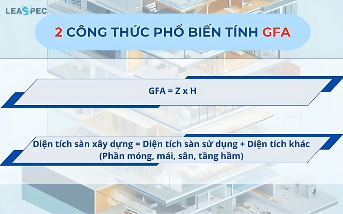 GFA = tổng (diện tích sàn từng khu vực x hệ số tính)