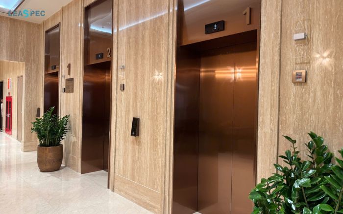 - Thang máy tốc độ cao ứng dụng công nghệ tiên tiến giúp di chuyển giữa các tầng nhanh.